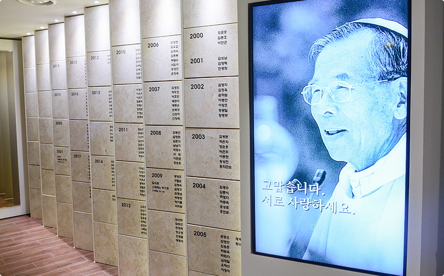 장기기증자 및 유가족에게 생명나눔 실천에 대한 감사함을 전하기 위해 마련된 기증자 추모공간